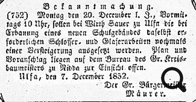 Am 7. Dezember 1852 finden wir eine Bekanntmachung der Gemeinde: