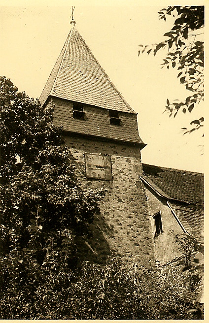 „Der nördliche Teil der Kirche mit Rundfenstern gehört dem 12. Jahrhundert an; mindestens ebenso alt ist der Turm, in welchem sich noch drei alte Glocken finden: zwei derselben tragen die Namen der vier Evangelisten, die dritte und grösste zeigt die Legende: . anno . dni . MCCCXXXIIII . mestir . bertule . de . sulgen“. Die 3 Kirchenglocken wurden im Jahre 1334 in Ulfa gegossen und sind das älteste Dreiergeläut Hessens, wahrscheinlich auch Deutschlands. (s. Bericht Kirchenglocken)